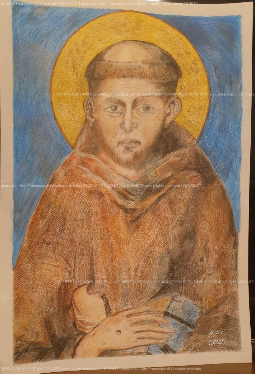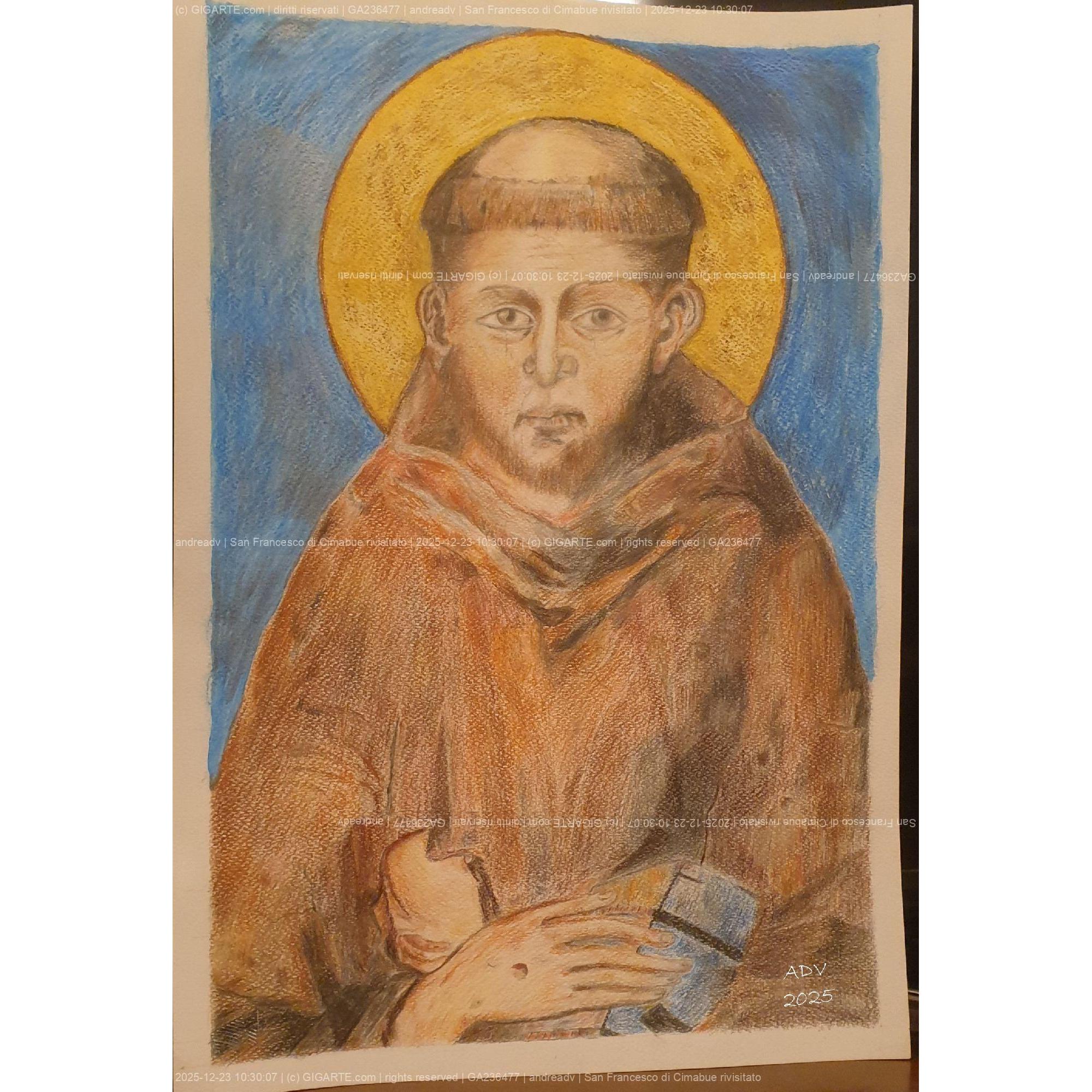 L'opera medievale di Cimabue mi ispirava da tempo e, solo oggi, ho trovato nel mio cuore, il desiderio di farla rinascere. Cimabue rimane Maestro di Semplicità in ricchezza di Spirito.